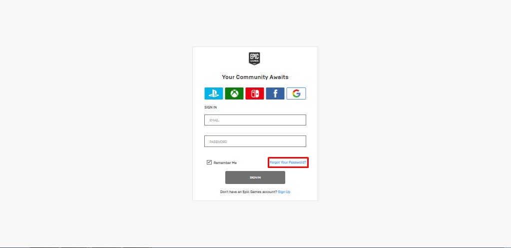 Paso 1: Selecciona la opción “Forgot your password” en la página de ingreso a Epic Game