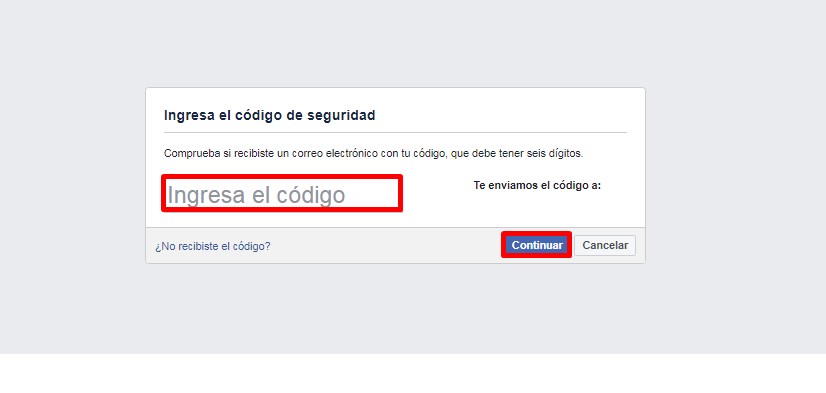 Revisa el correo o a donde solicitaste el código de confirmación en ingrésalo en la casilla correspondiente marcada por la plataforma para seguir con el proceso de recuperación de tu cuenta en Facebook.