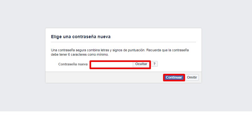 Al ser confirmada tu identidad, coloca la nueva contraseña para poder cambiar y renovar la clave.