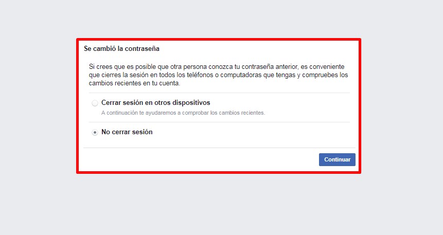 Confirma que realizaste el cambio de contraseña para cerrar la sesión en todos los dispositivos que tengas y disfruta de la cantidad de herramientas, funciones y servicios de la red social Facebook.