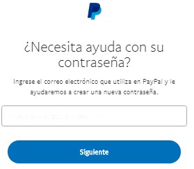Luego de haber realizado el paso anterior, aparecerá una pestaña en donde deberás escribir el correo usado para la creación de la cuenta. De esta manera Paypal podrá ayudarte en el proceso de creación de una nueva contraseña.
