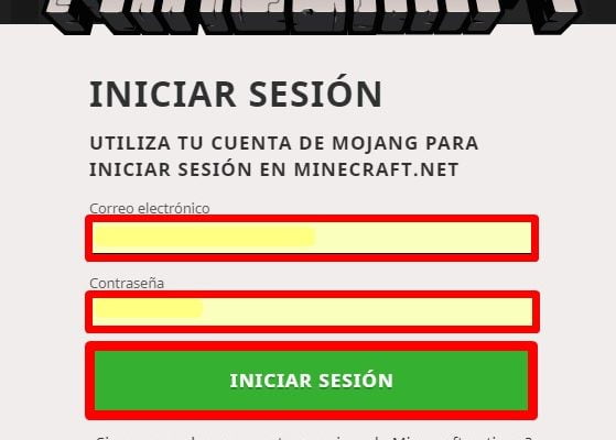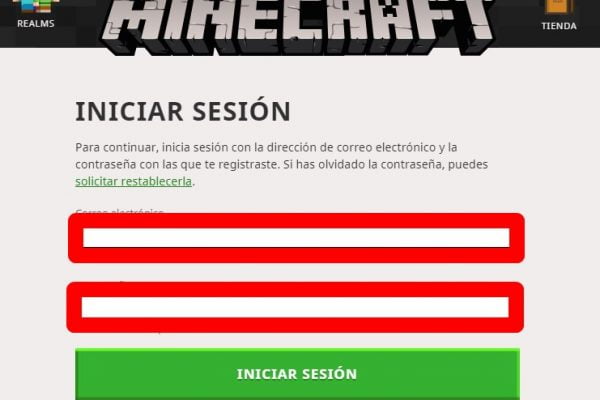 Paso 3: Ingresa los datos de tu cuenta de Minecraft