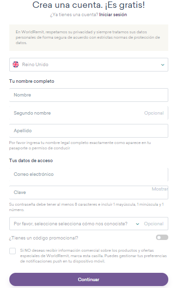 Cómo crear una cuenta en WorldRemit