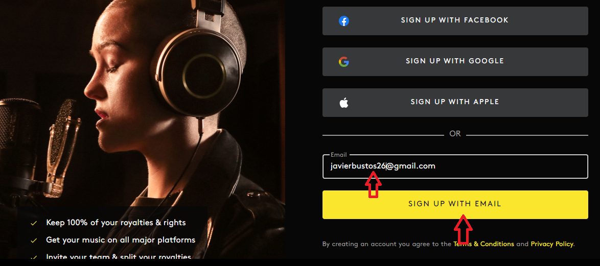 Sin embargo siempre recomendamos registrarse con el email, ya que de esta forma podemos recibir algunas comunicaciones que nos pueden ser de utilidad, además de la posibilidad de verificar nuestra identidad. Por eso debemos colocar el correo electrónico que queramos vincular en el campo Email. Cuando tengamos este dato completo simplemente tenemos que tocar la opción que dice Sign up with email, y ya pasaremos a la siguiente instancia.