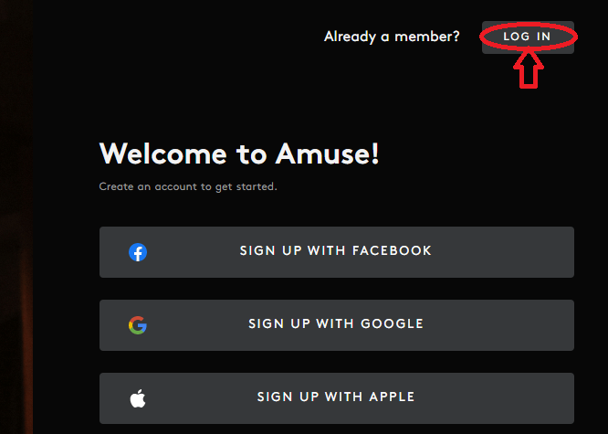 A pesar de que hay una aplicación mobile que se puede descargar en las distintas tiendas de aplicaciones, la primera vez que se ingrese a la plataforma tiene que ser a través del entorno web, y lo mismo corre para el momento de crear la cuenta. Por eso el primer paso para dar es el de ingresar a la página web oficial de Amuse, solamente haciendo click en el link que dejamos resaltado en azul en esta oración.