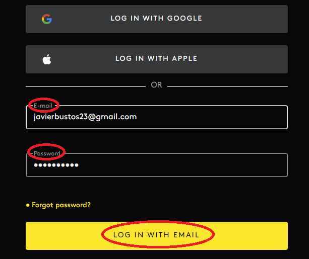 Por último debemos completar el correo electrónico en el campo E-mail, y la contraseña que nos hayamos generado previamente en el campo Password. Cuando tengamos esas dos variables listas, solo nos quedará presionar en Log in with email, y nos encontraremos dentro para empezar a operar con la plataforma.