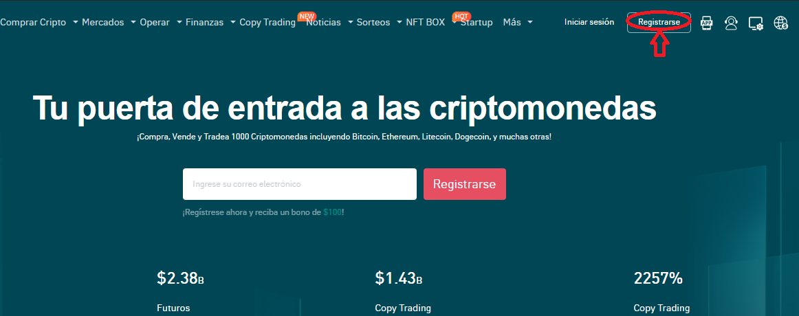Una vez allí tenemos que buscar el botón que dice Registrarse y hacer click en el mismo, ya que de esa forma comenzaremos con el proceso de registro. Este está en el extremo superior derecho de la pantalla, al lado de la opción de iniciar sesión.