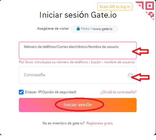 A pesar de que en algunas plataformas de criptomonedas la forma de iniciar sesión es un poco más compleja con respecto a otros sitios, no es el caso de Gate.io. Para acceder a la cuenta que generamos simplemente tenemos que completar dos campos y hacer un click. Pero primero que nada debemos ingresar al sitio web oficial de Gate.io, y podemos hacerlo simplemente presionando en este enlace. Una vez allí hay que tocar la opción de Iniciar sesión que está ubicada arriba del todo a la derecha.