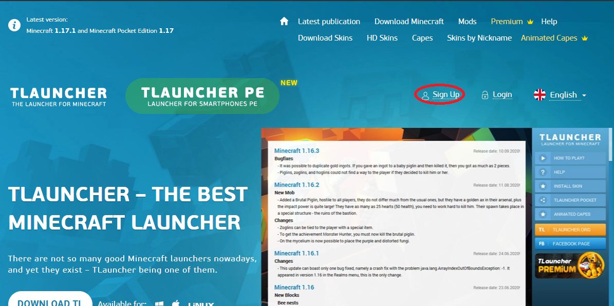 A diferencia de otros Launchers con los que podemos encontrarnos, en este caso no hay que descargar ningún programa a nuestros dispositivos. Lo primero que debemos hacer es entrar a la web de TLauncher, ya que ahí nos encontraremos con todas las opciones para comenzar a crear la cuenta.