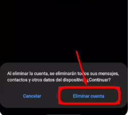 Paso 5: Presionar en Eliminar cuenta