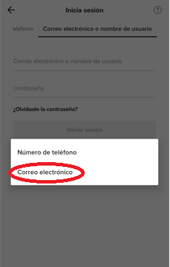 Paso 3: Seleccionar la opción de correo o nombre de usuario