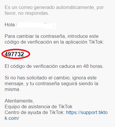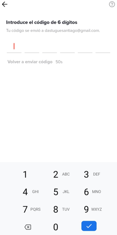 Lo que debemos hacer en esta instancia es ingresar a la bandeja de entrada de la casilla que escribimos en el paso previo, y entrar al mail que nos llegará por parte de TikTok. En el medio del correo hay un código de 6 dígitos que se puede identificar fácilmente, y es el que tenemos que escribir en la próxima pantalla que nos aparece dentro de la app. En las siguientes imágenes vemos cómo se dan estas dos instancias.